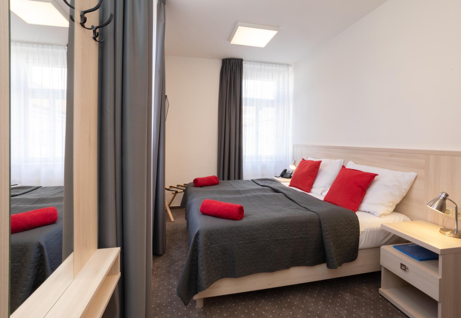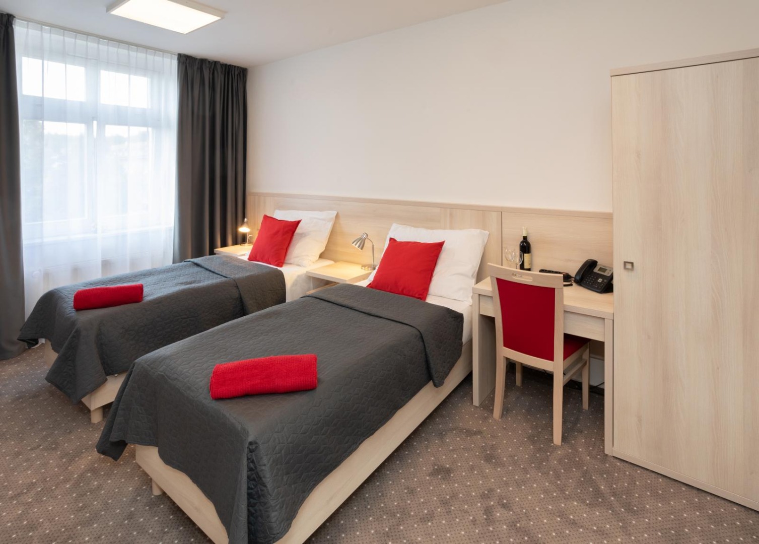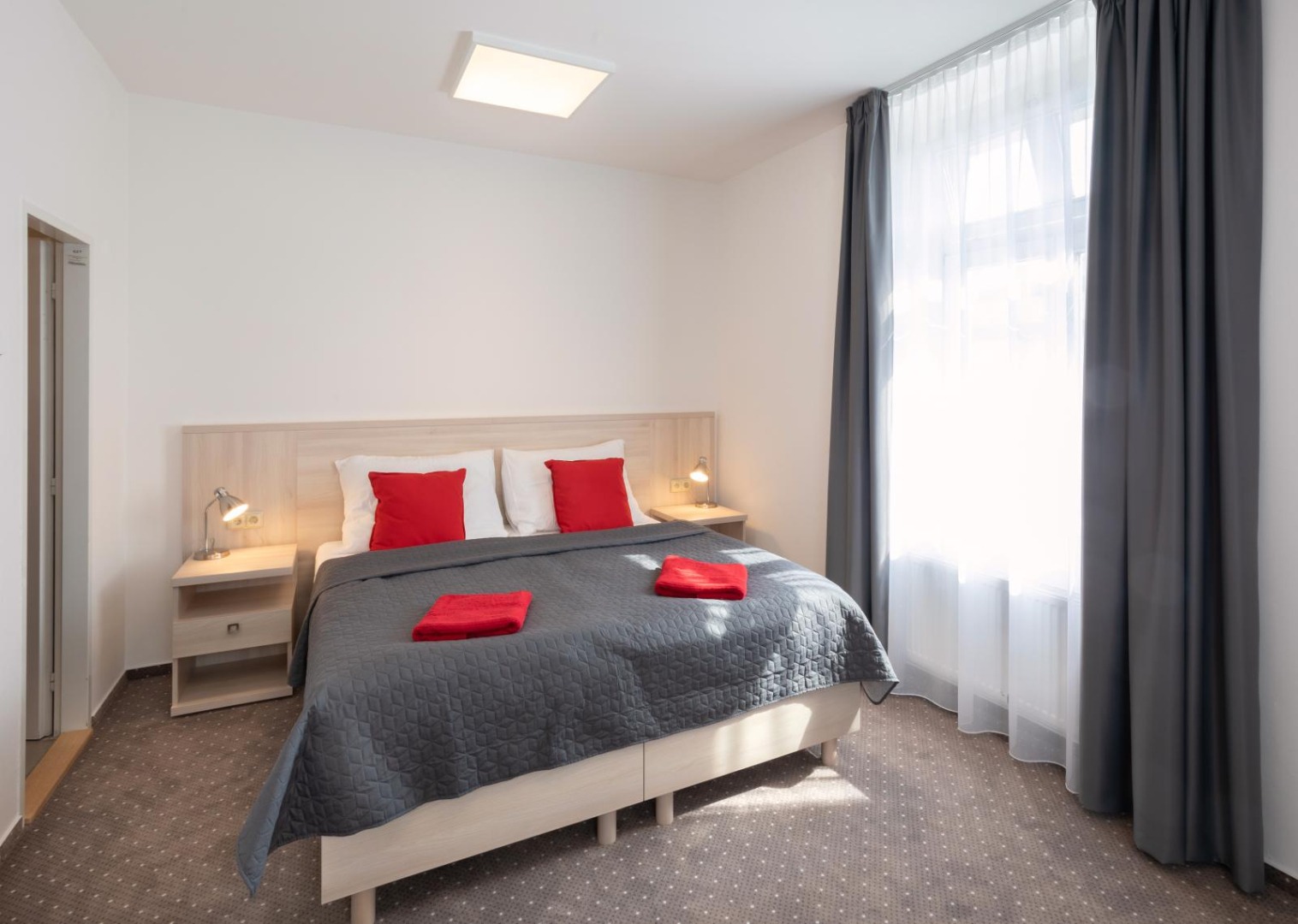 - Jedno až dvoulůžkové pokoje s vlastním příslušenstvím, vícelůžkové apartmány, telefon, TV, internet.